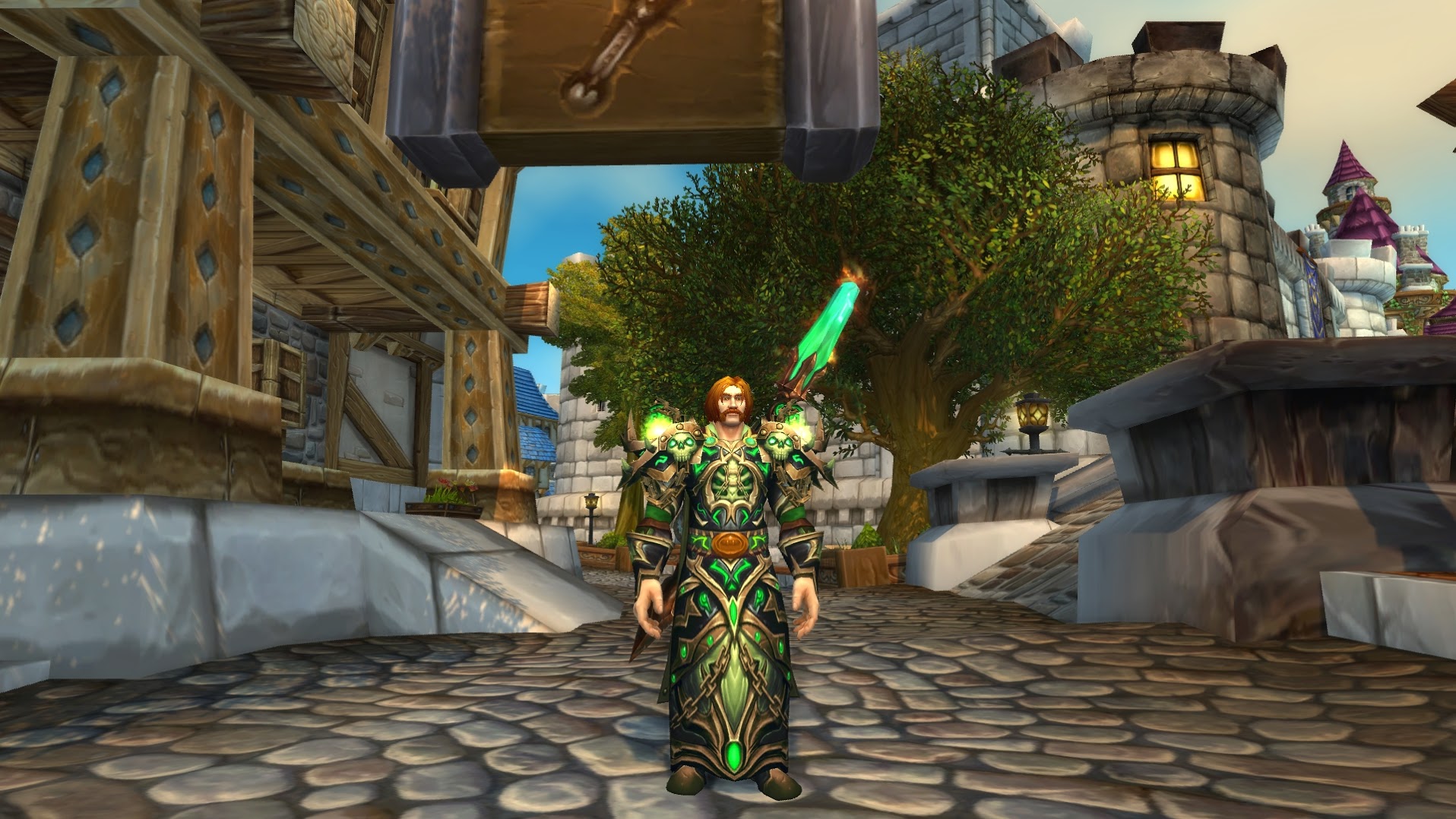The leveling went so ridiculously quick with all the heirloom gear we now have up to level 100. I think i only hit up two of the five zones before i dinged. I completely skipped Gorgrond, Spires of Arak, and Nagrand. It’s a bit of a shame since i have to go back and do those zones anyway for followers and story completion, but i’ll do that another time. For now it’s all about finding a new transmog for him since he’s a bit too green for my tastes. Let the dress up commence. I’m thinking something in a purple.